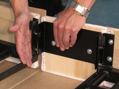 Drag the half frame on the carton, towards the inserted joining panels until the other pair of bolts similarly, gets into its holes.