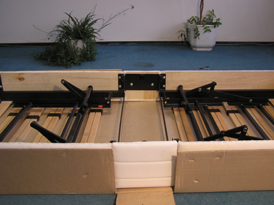Push both sections of the frame (the head one and the foot one), toward each other, in order to move them closer to the inserted joining panels.